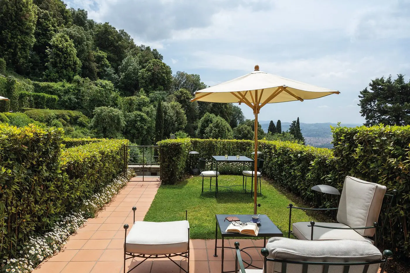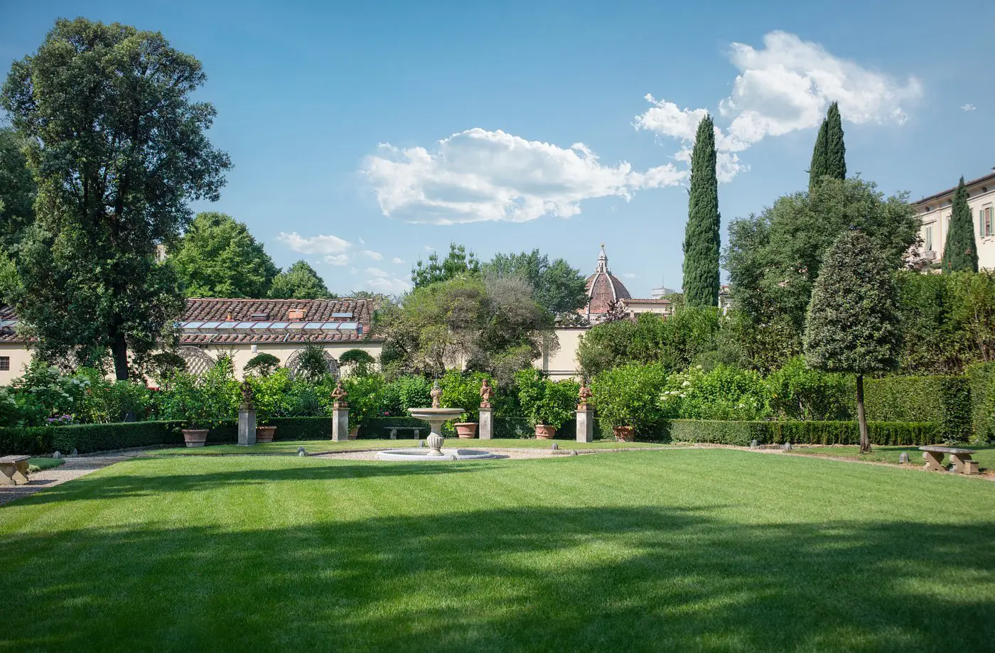 Located just a 10-minute walk from Piazza del Duomo, this renowned 5-star hotel stands out for its expansive private garden—the largest in Florence. As a result, guests can explore statues, fountains, and centuries-old trees as they wander. The 77 rooms and 44 suites feature fresco-adorned walls and preserved architectural details, adding to the hotel’s charm.